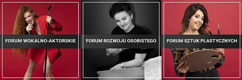 Ale to nie wszystko. W ART FORUM wierzymy, że rozwijając się na wielu płaszczyznach wzbogacamy swoje życie, a zaopiekowanie się jedną dziedziną artystyczną wzmacnia nasze zdolności, pewność siebie i satysfakcję w pozostałych. Dlatego w ART FORUM oferujemy nie tylko zajęcia z nauki śpiewu. Znajdziesz u nas ofertę zajęć z dykcji, aktorstwa, zajęcia artystyczne (sztuki plastyczne, rękodzieło itp.) oraz zajęcia z rozwoju osobistego, które dla wielu są „kompasem” w życiu i pomagają im sprostać wyzwaniom codzienności.
